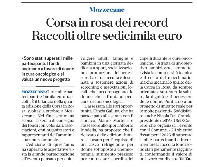«Questo risultato – ha commentato il presidente di SeiXCorrere, Nicola Dal Grande – non è un traguardo, ma uno stimolo a continuare a crescere insieme, con ancora più energia».